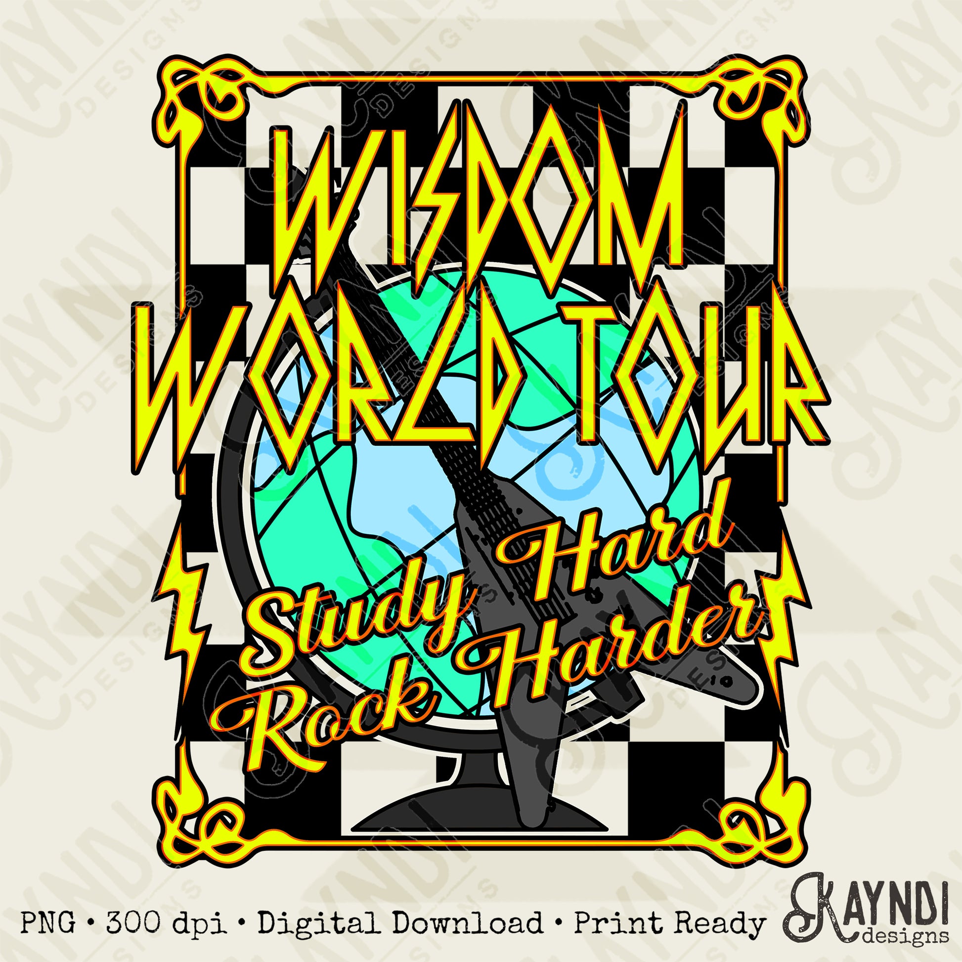 Wisdom World Tour Green Sublimation Design PNG Digital Download Printable School Rock Kids