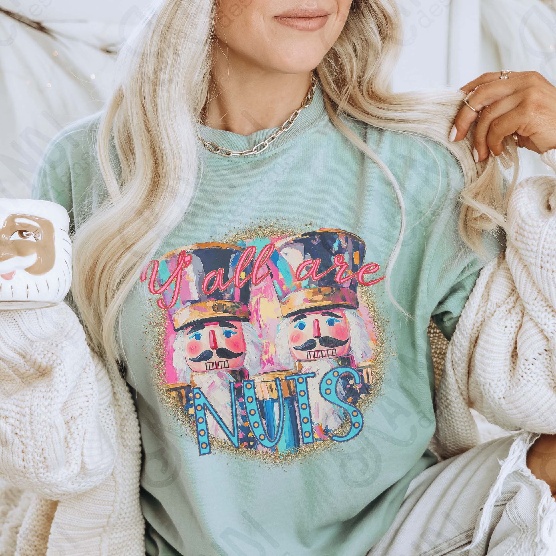 Yall are Nuts Sublimation Design PNG Digital Download Nutcraker Pink Blue Funny