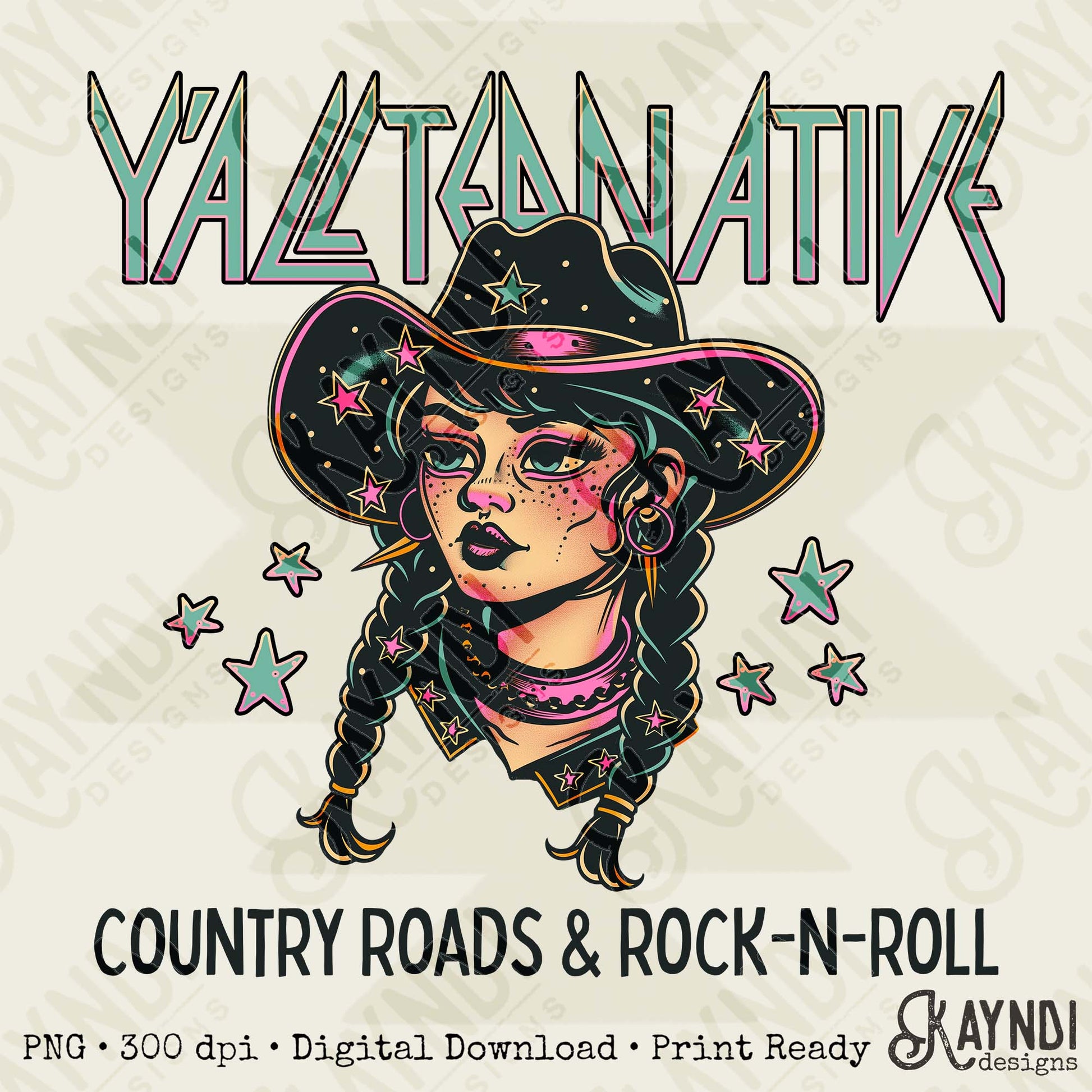 Yallternative Sublimation Design PNG Digital Download Western Cowgirl Black